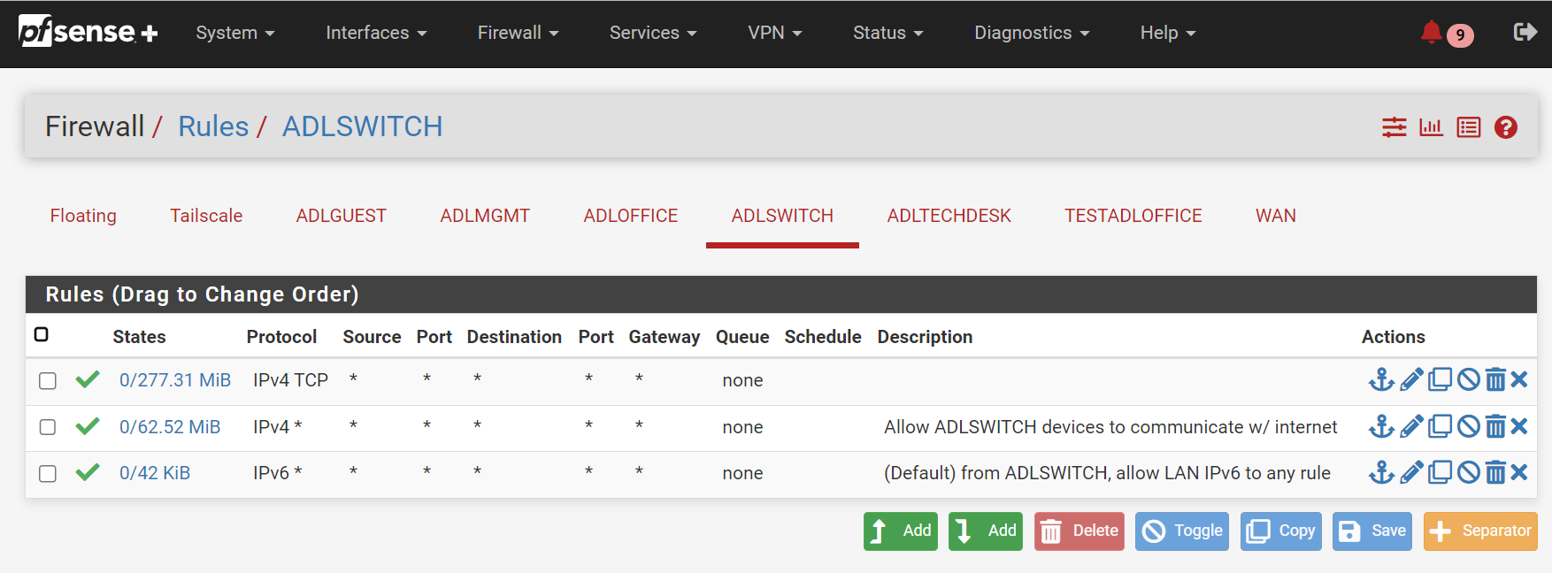 Navigate to Firewall / Rules, and select the interface name you just created (