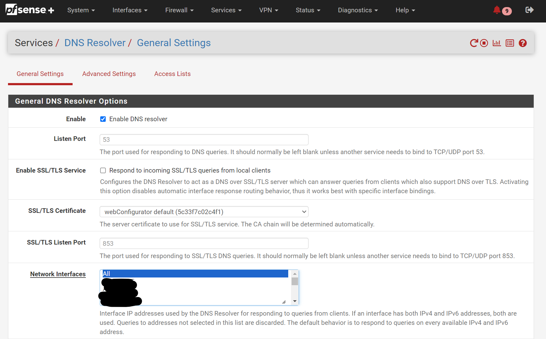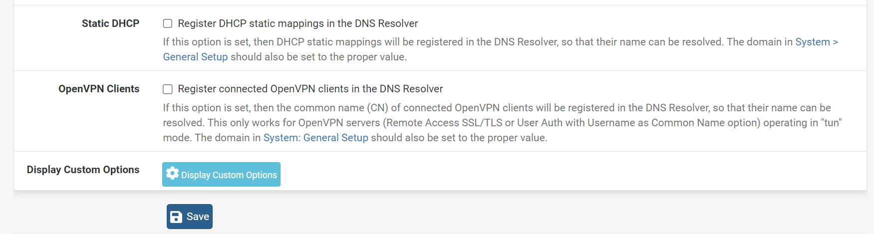 Go to Services / DNS Resolver and check that Network Interfaces has “All” selected. This is very important - and will ensure the DNS Resolver will know to look for and operate on your new network interface.