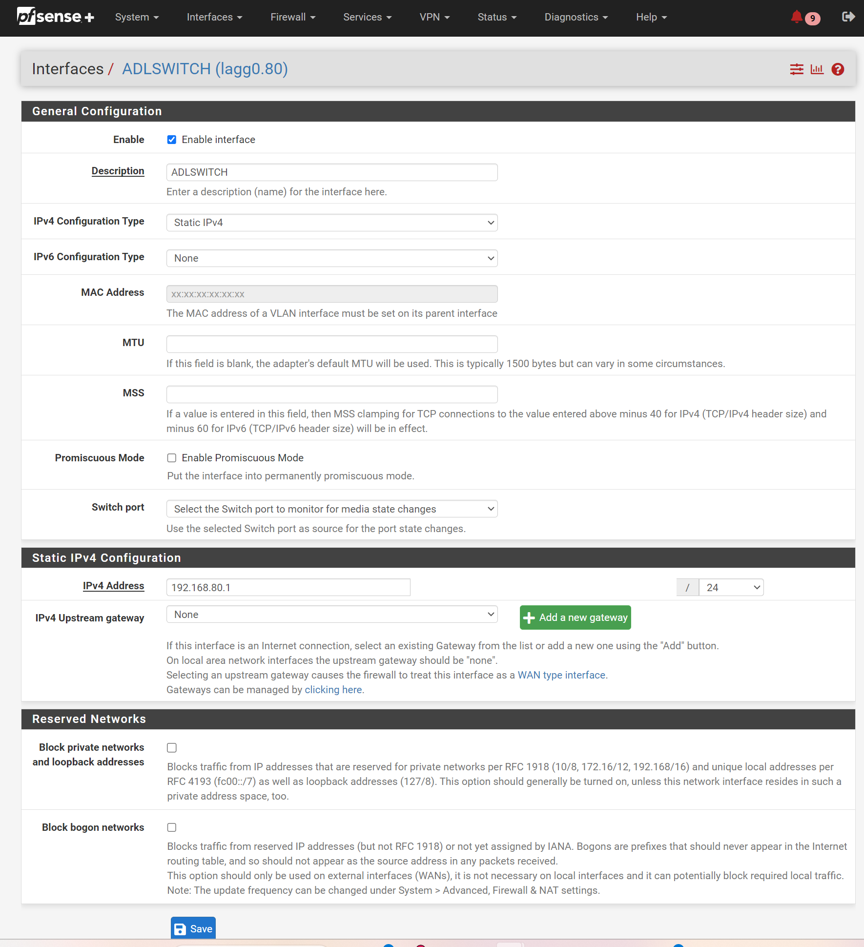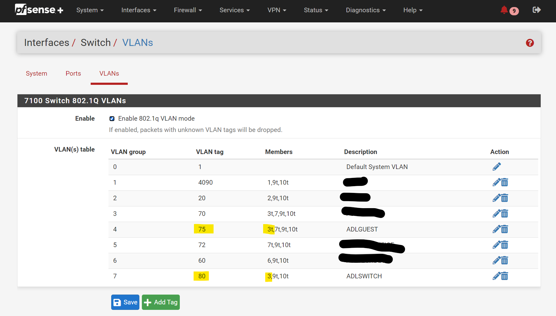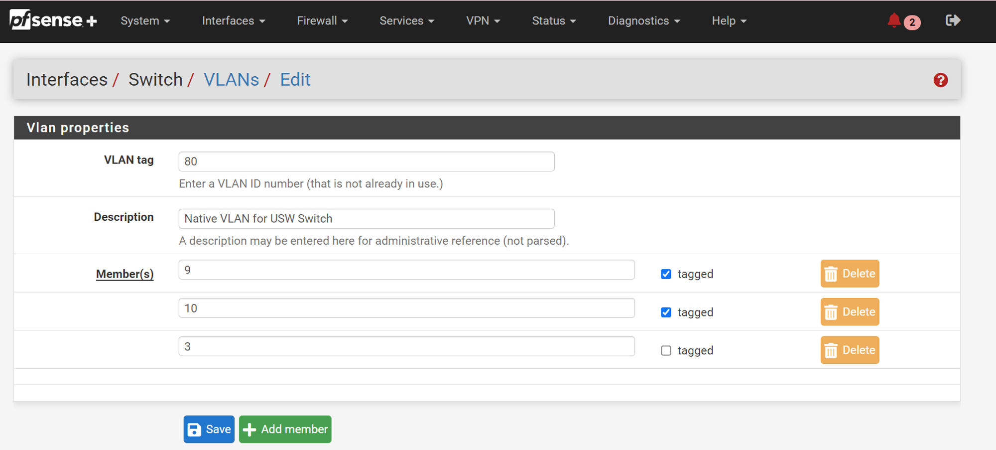 Save.NOTE: ALWAYS ADD 9 & 10 as tagged members by default (WHY this must be done is beyond the scope of this tutorial but perhaps write an article about it soon as it explains a lot about how the internals of pfSense actually functions. alternatively, for the curious, read the docs here)