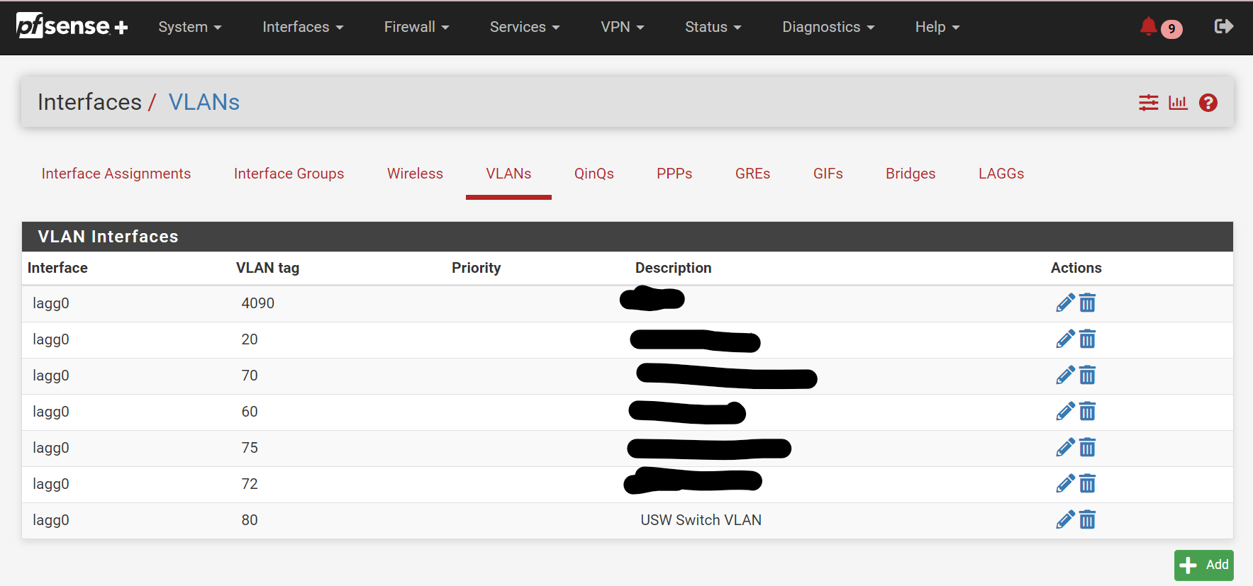 Now you should be able to use a UniFi switch to tag traffic coming through particular ports with specified VLAN tags, & have it routed to the corresponding VLAN network on the pfsense!