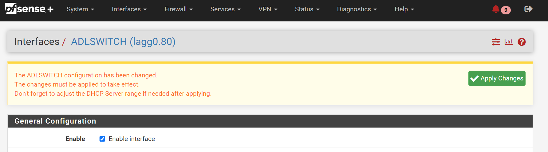 ADLSWITCHfor me).Here, we can set the pool of IP addresses this interface will assign to connected devices on