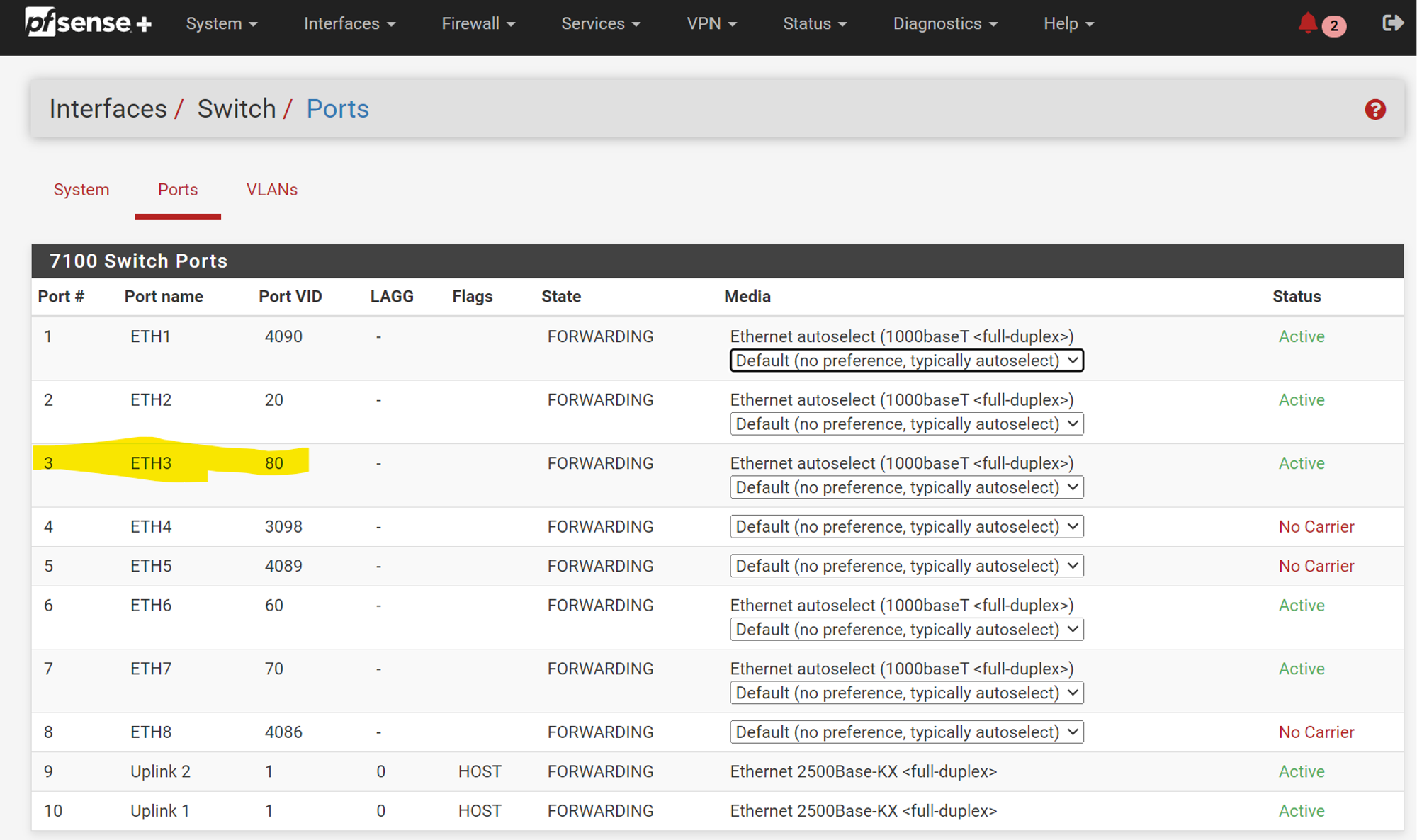 Port VID = 80will mean any untagged passing traffic through ETH3 gets a VLAN tag of80.